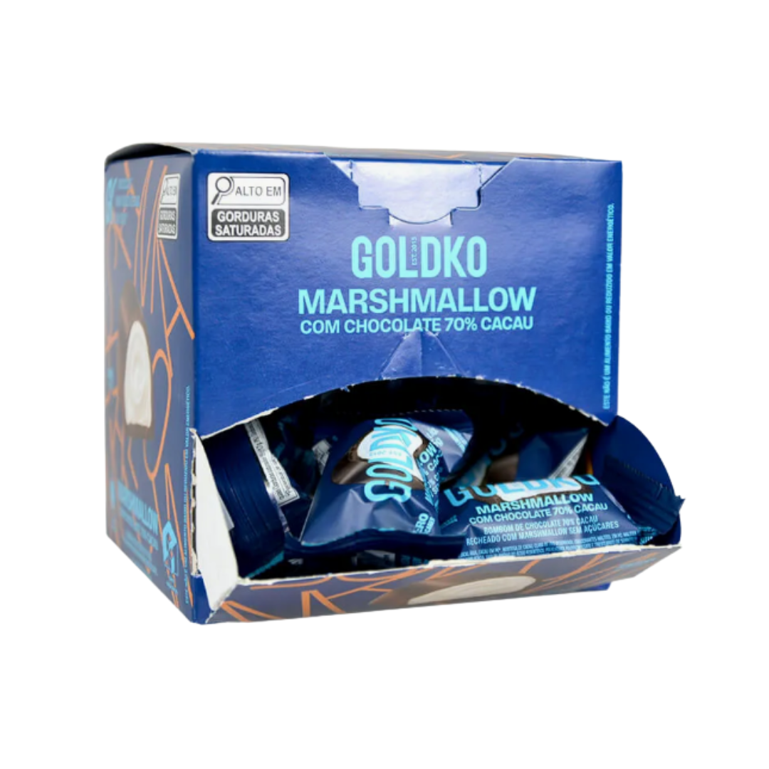 Caixa de bombom de marshmallow 70% cacau zero adição de açúcares (41 Kcal por unidade) - 18 unidades