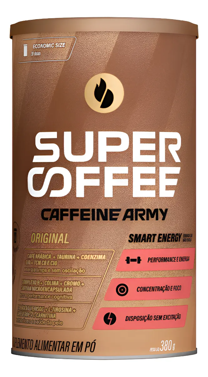 Triglicerídeos de cadeia média C8 + C10 (TCM), colágeno hidrolisado, taurina, leite de coco em pó, L-tirosina, café verde moído, café arábica solúvel, L-carnitina L-tartarato, cafeína microencapsulada, bitartarato de colina, coenzima Q10, especiarias, complexo de vitaminas B (tiamina mononitrato (vitamina B1), nicotinamida (vitamina B3), D-pantotenato de cálcio (vitamina B5), cloridrato de piridoxina (vitamina B6), ácido N-pteroil-L-glutâmico (vitamina B9), cianocobalamina (vitamina B12)), picolinato de cromo, aromatizantes, regulador de acidez bicarbonato de sódio e edulcorante glicosídeos de esteviol de Stevia rebaudiana Bertoni. ALÉRGICOS: CONTÉM DERIVADOS DE LEITE. PODE CONTER SOJA. NÃO CONTÉM GLÚTEN.